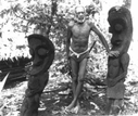 Don Yacoe high on a ridge in Tongpalm village North Ambrym, Vanuatu 1990. This figure Makenbul representing the owner’s ancestral spirit and his achievement of a higher grade in the Nimangki society was part of ceremonies in 1968